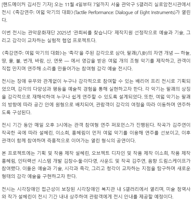 배리어 프리 전시 <촉감연주: 여덟 악기의 대화> 개최 (25.10.16)