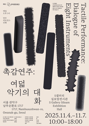 배리어프리 전시 ‘촉감연주: 여덟 악기의 대화’(Tactile Performance: Dialogue of Eight Instruments)가 오는 11월 4일부터 7일까지 서울 관악구 S갤러리 실로암전시관에서 열린다.
