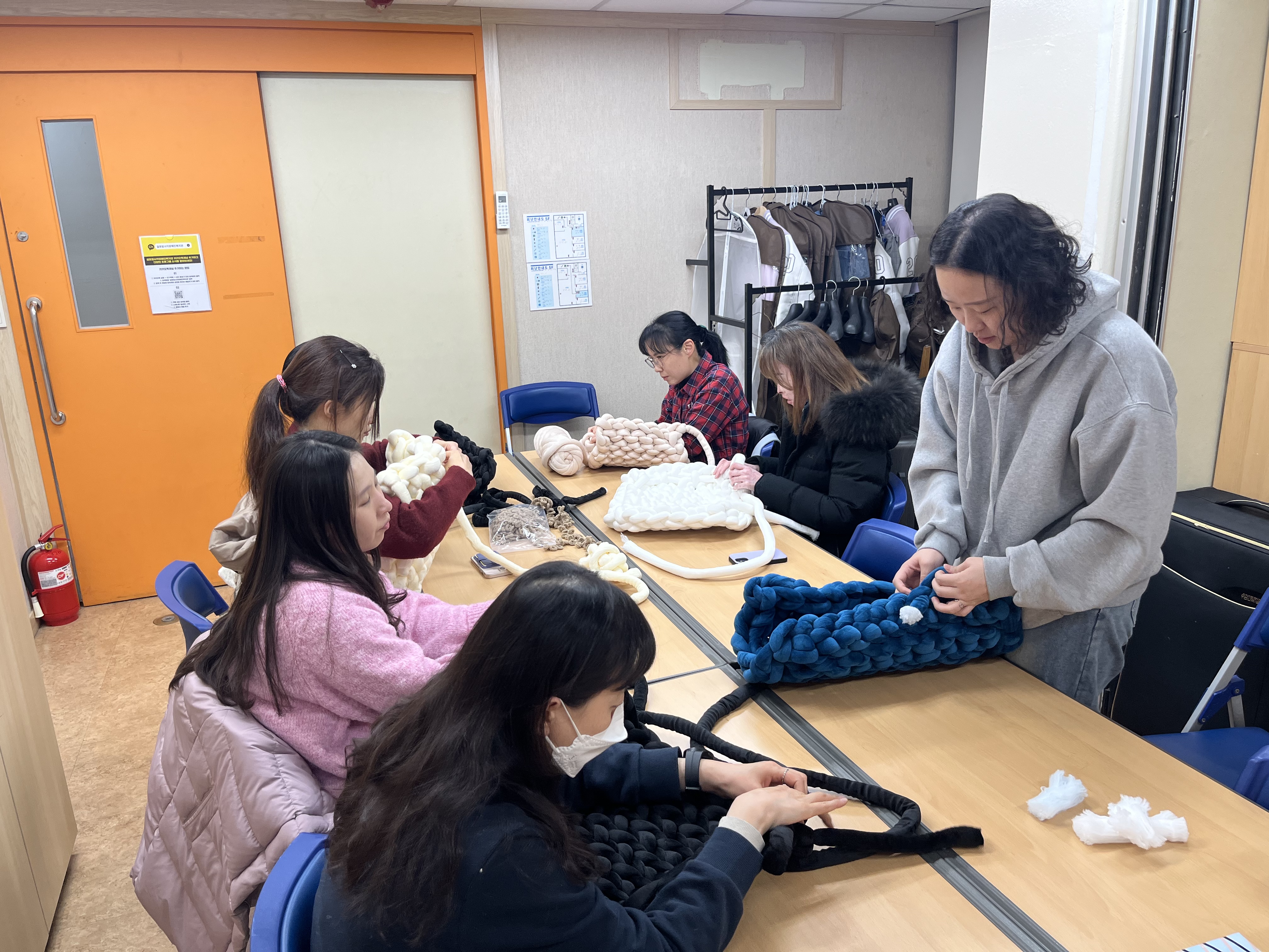 긴 시간 함께 해주시는 동안, 여러 번의 교육을 통해 핸드니팅 기법을 꼼꼼히 익힐 수 있어 좋았다는 감상, 겨울에 잘 어울리는 소품을 만들 수 있어 좋았고 같이 만들기를 하며 이야기를 나누는 시간이 힐링 되었다는 감상을 남겨주셨습니다.주변에 선물한 뒤의 반응 등을 수업 전 화기애애하게 나누며 뜻깊은 시간을 보냈습니다. 강사님께서도 교육생분들이 많은 질문을 해주시며 열심히 만들어주는 모습에 힘이 난다고 첨언해주셨습니다.
